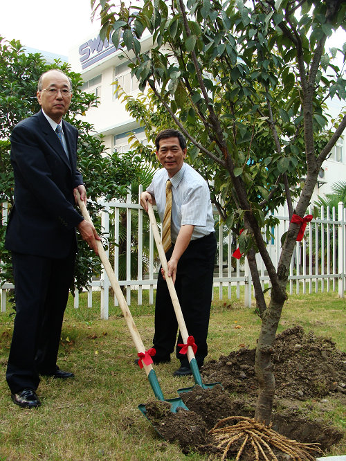熱烈歡迎野口制作所野口真司會(huì)長(zhǎng)來我公司指導(dǎo)! 我公司董事長(zhǎng)與野口會(huì)長(zhǎng)同種櫻花樹,預(yù)祝我們合作愉快,中日友好!